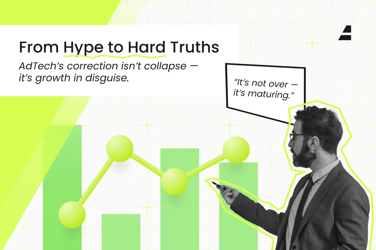 AdTech growth and correction visual — maturity over hype in digital advertising.