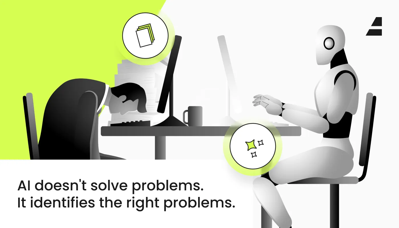 AI doesn't solve problems; it identifies the right ones. Visualizing the separation between the strategic marketer and the one overwhelmed by routine tasks.